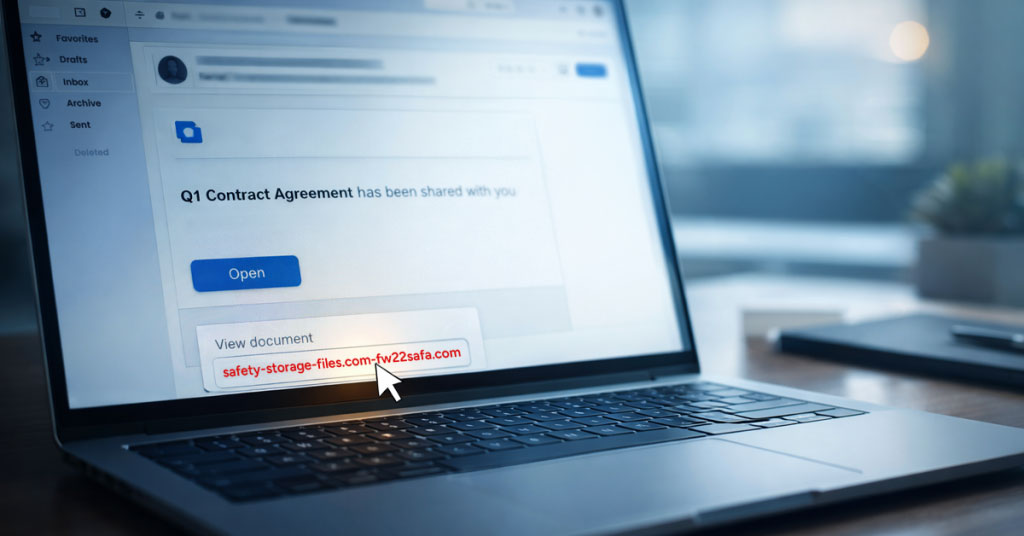 The sender’s name looks right. The formatting looks exactly like every other file-share notification they see.